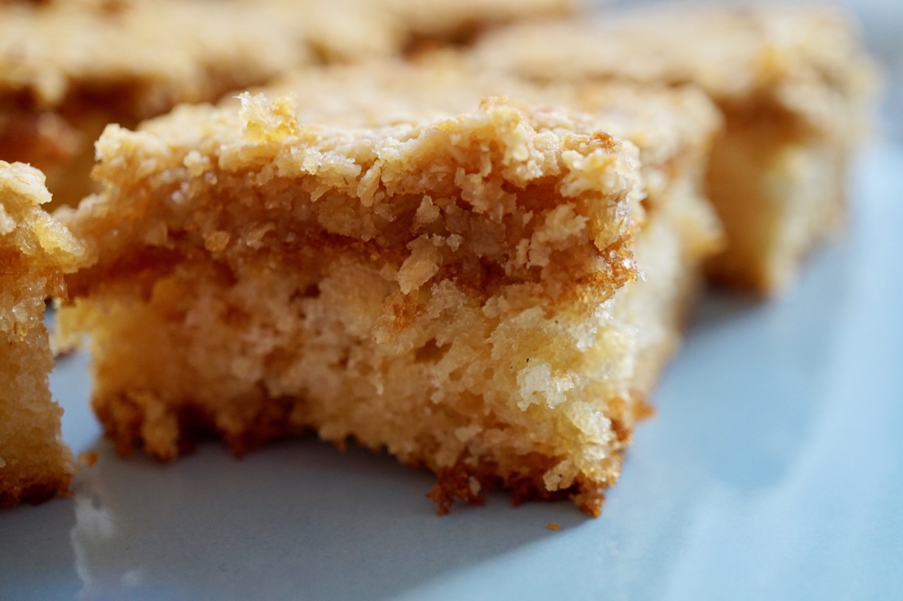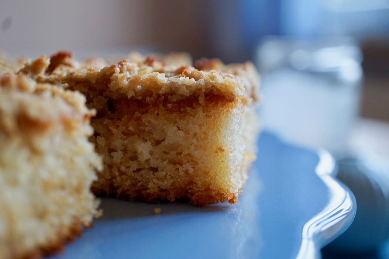 So profitiert meine Familie heute von einem neuen Versuch, den Traumkuchen wirklich traumhaft hinzubekommen. Ich habe den Zucker nochmals reduziert. Jetzt schmeckt der Kuchen uns allen. Das Rezept habe ich dem Buch "New Nordic - Das Kochbuch"* entnommen. Es gibt verschiedene Varianten des Rezepts. In dem Buch werden Gerstenflocken vorgeschlagen. Oft werden für die Kruste auch Kokosraspeln verwendet. Der Adventsjunge hat mir heute beim Backen geholfen.