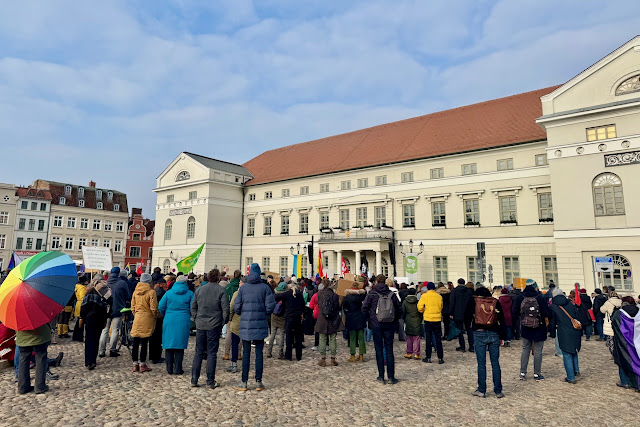 Um 11 Uhr trafen wir dann am Bahnhof Wismar ein. Mal wieder demonstrierten viele Menschen für Demokratie und Vielfalt. Übrigens ganz freiwillig und unbezahlt.