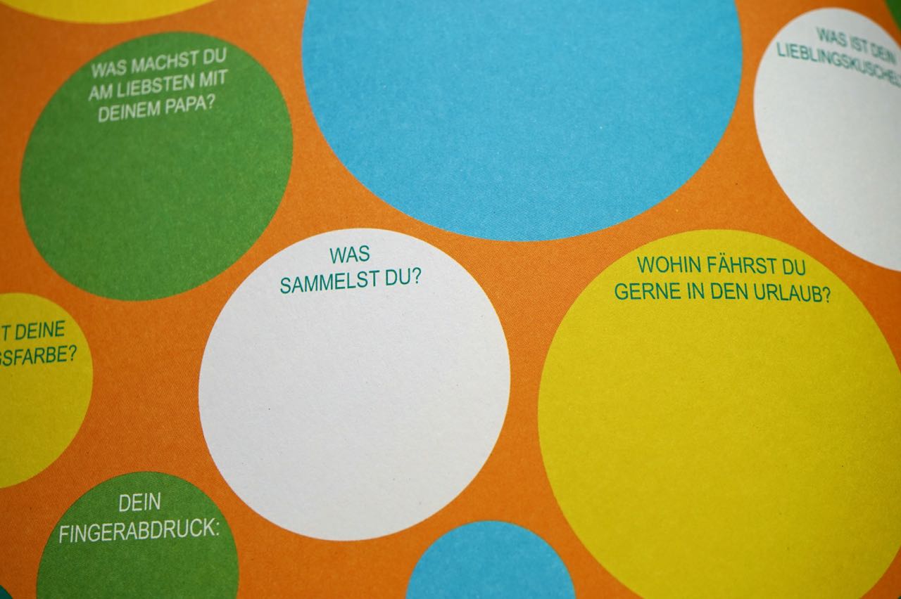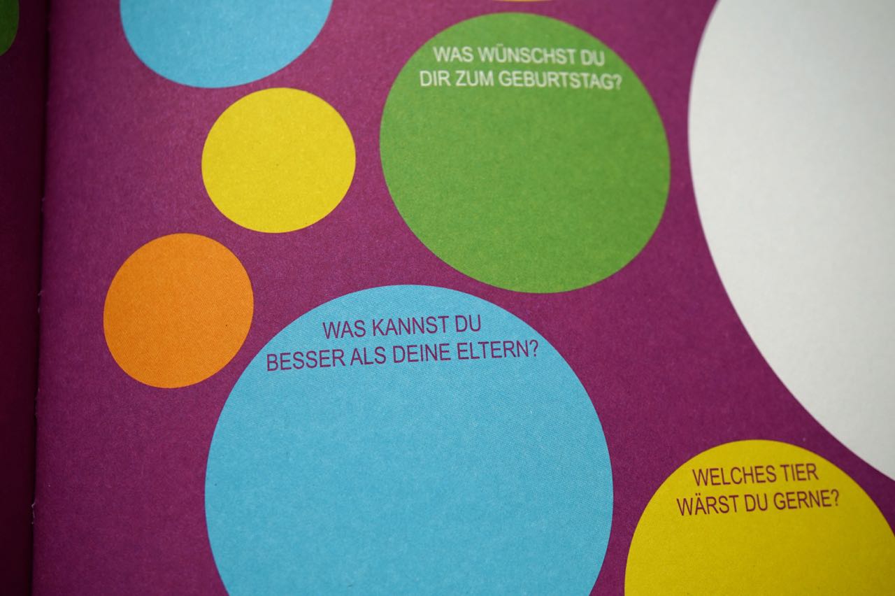Das mache ich hiermit. Das Buch und seine Seiten sind sehr schlicht, aber fröhlich bunt. Die Fragen lassen viel Raum für kreative Antworten und die bunten Kreise haben genügend Platz für Zeichnungen oder Wörter. Beigelegte Aufkleber lassen sich vielseitig verwenden.