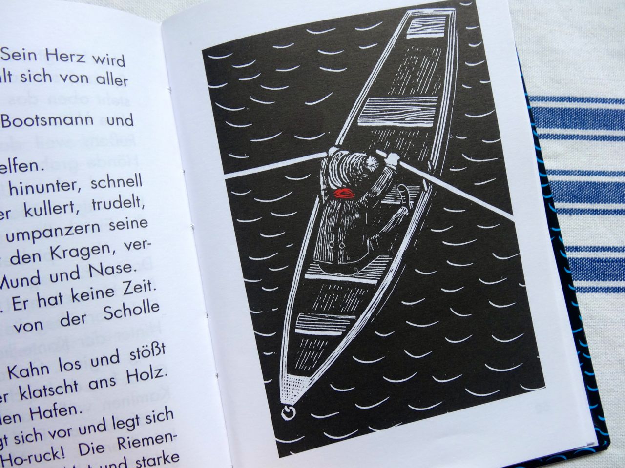 Draußen ist Winter. Es hat Tage und Nächte hindurch gefroren. Viel Schnee ist gefallen und die Pfähle im Hafen haben weiße Hauben und die Schiffe sehen aus wie überzuckert."